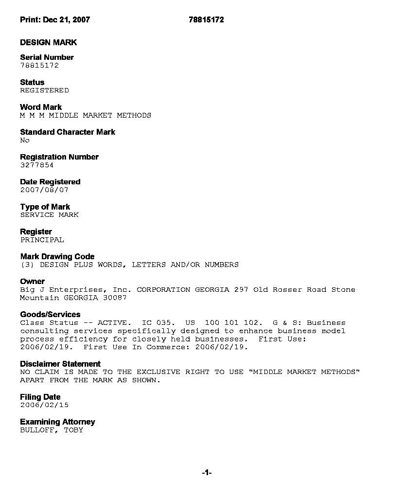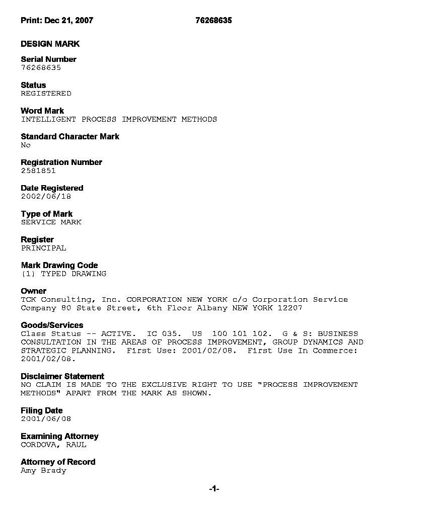 Class 041: “Educational and training services, namely, consulting seminars, workshops and one-on-one training in the fields of business management and business operations and distribution of course material in connection therewith”;