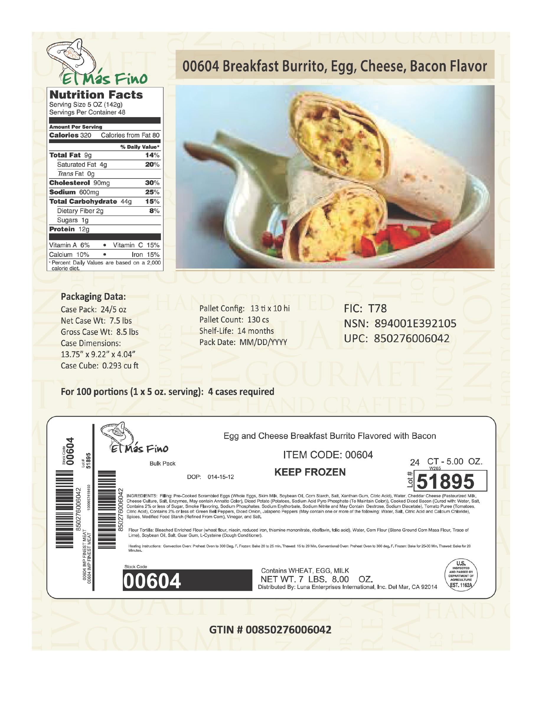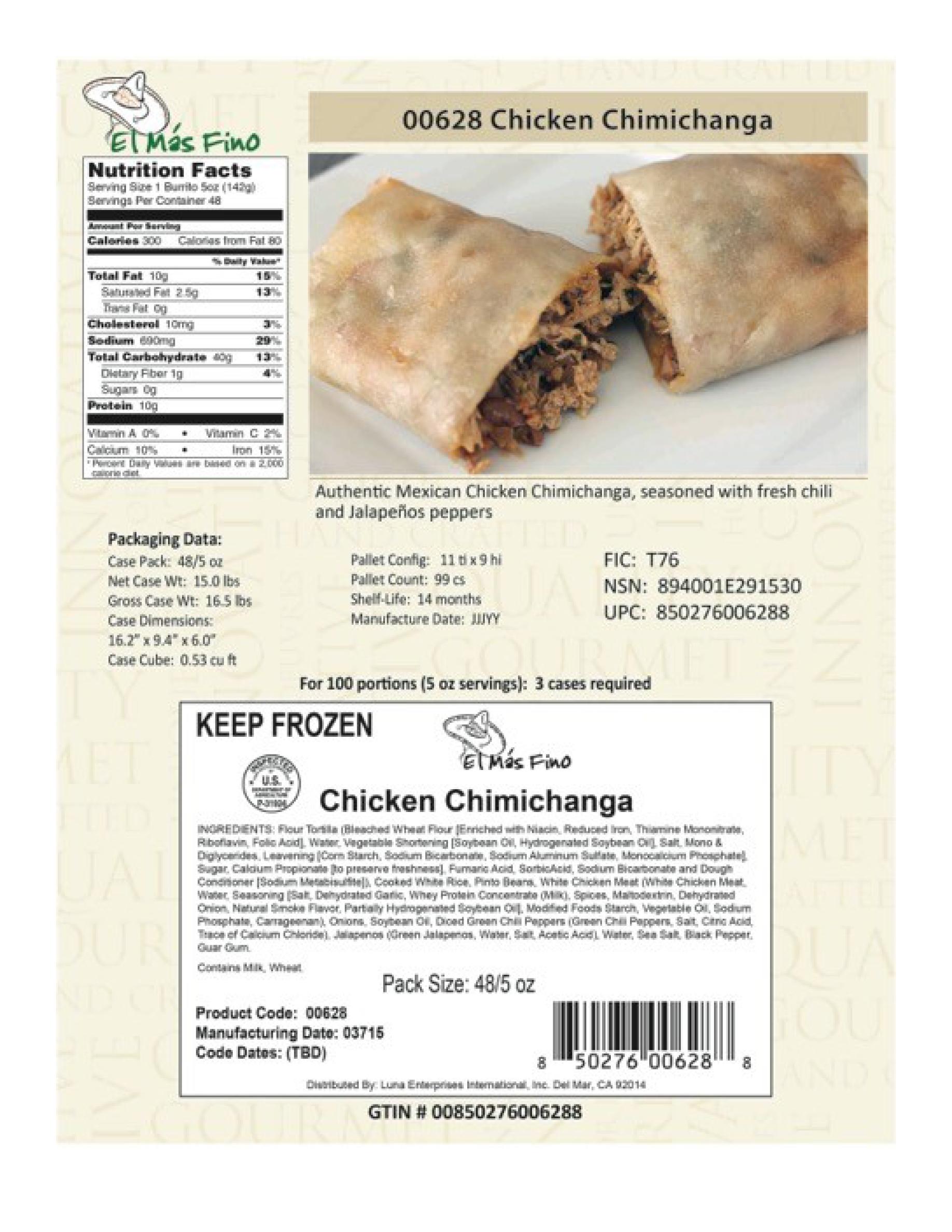 | GOODS OR SERVICES | Breakfast burritos; Burritos; Chimichanga; Enchiladas; Quesadillas; Tamales; Tortillas |