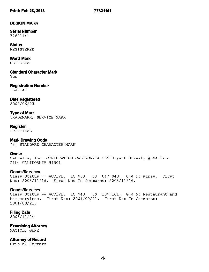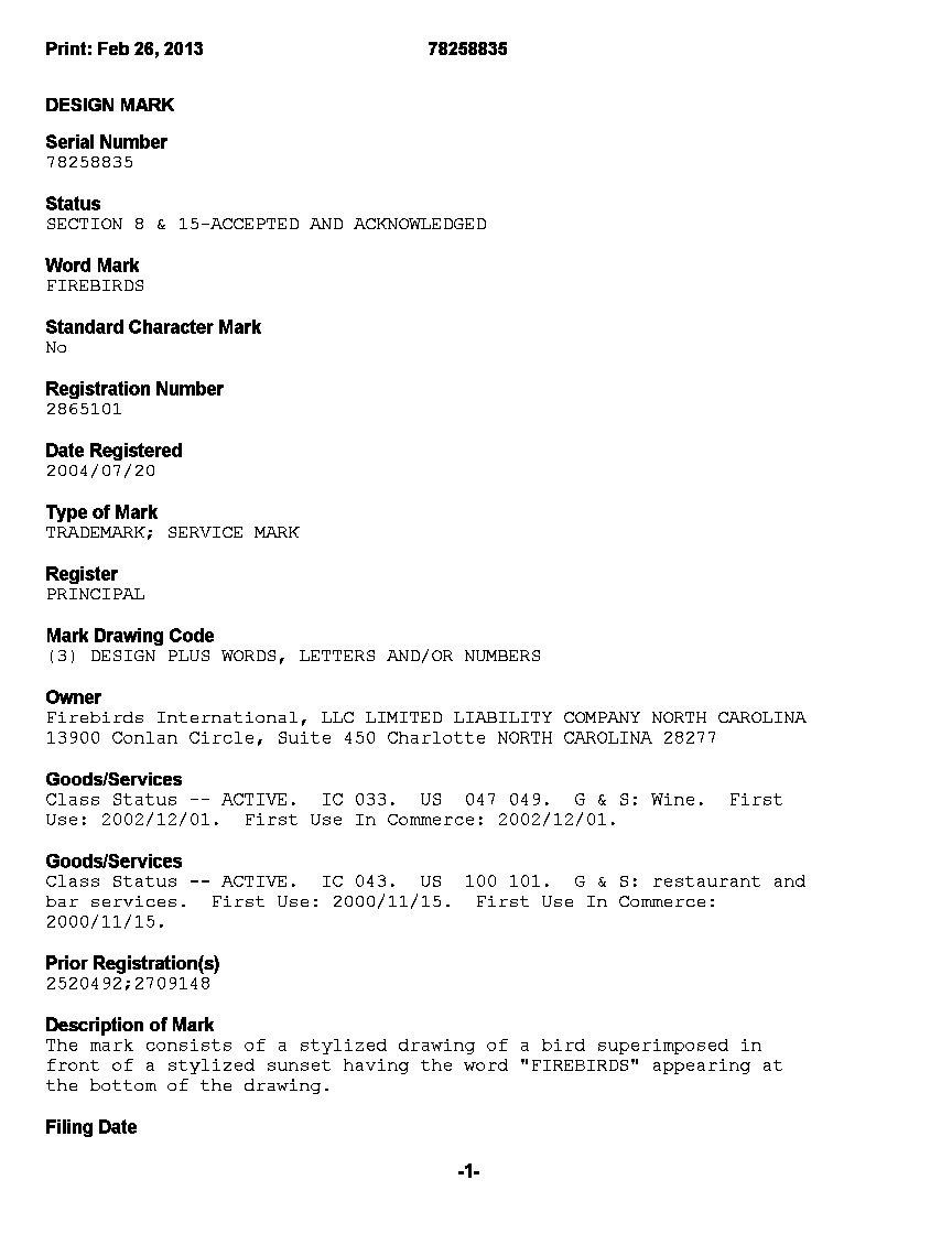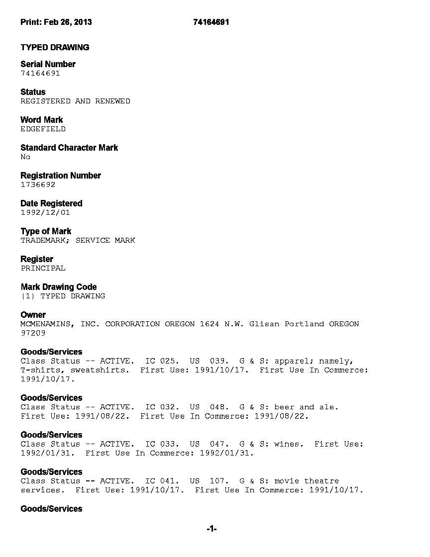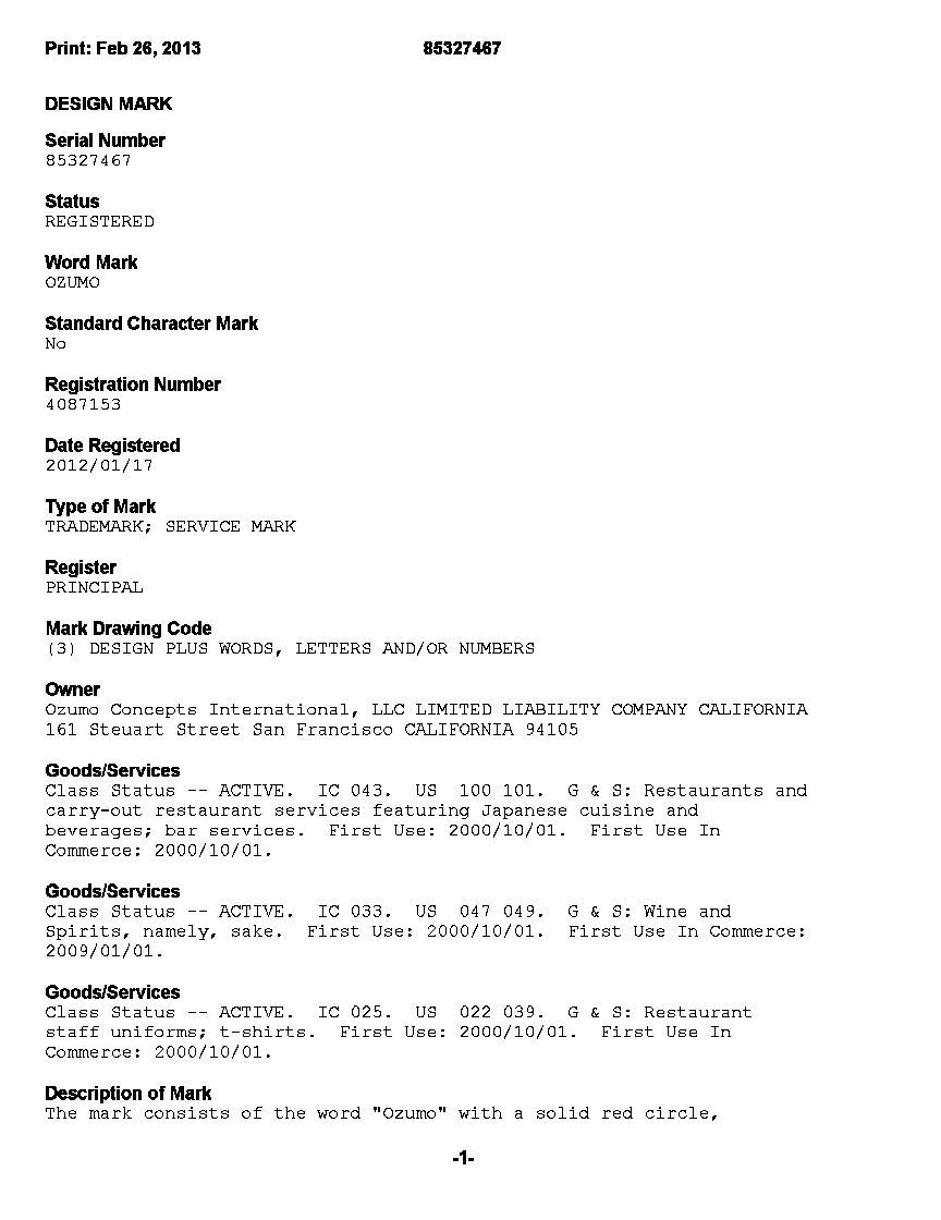 1 Serial No. 75/722, 593, filed June 9, 1999. The application is based on use in commerce, and alleges August 24, 1987 as the date of first use and first use in commerce.