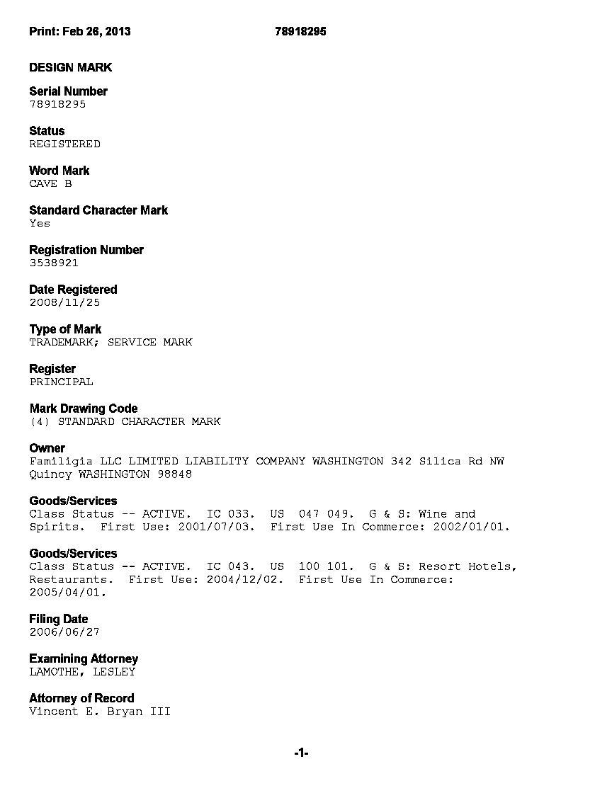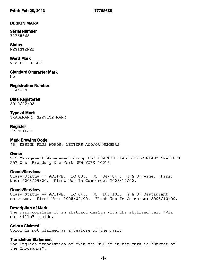 [ 1 ] We find that OPUS ONE is arbitrary as applied to wine (or as applied to restaurant services). Applicant does not contend otherwise. We further find, under the sixth du Pont factor, that the evidence of record pertaining to “the number and nature of similar marks in use on similar goods” is insufficient to support any conclusion other than that registrant's OPUS ONE mark for wine is a strong mark which is entitled to a broad scope of protection.
