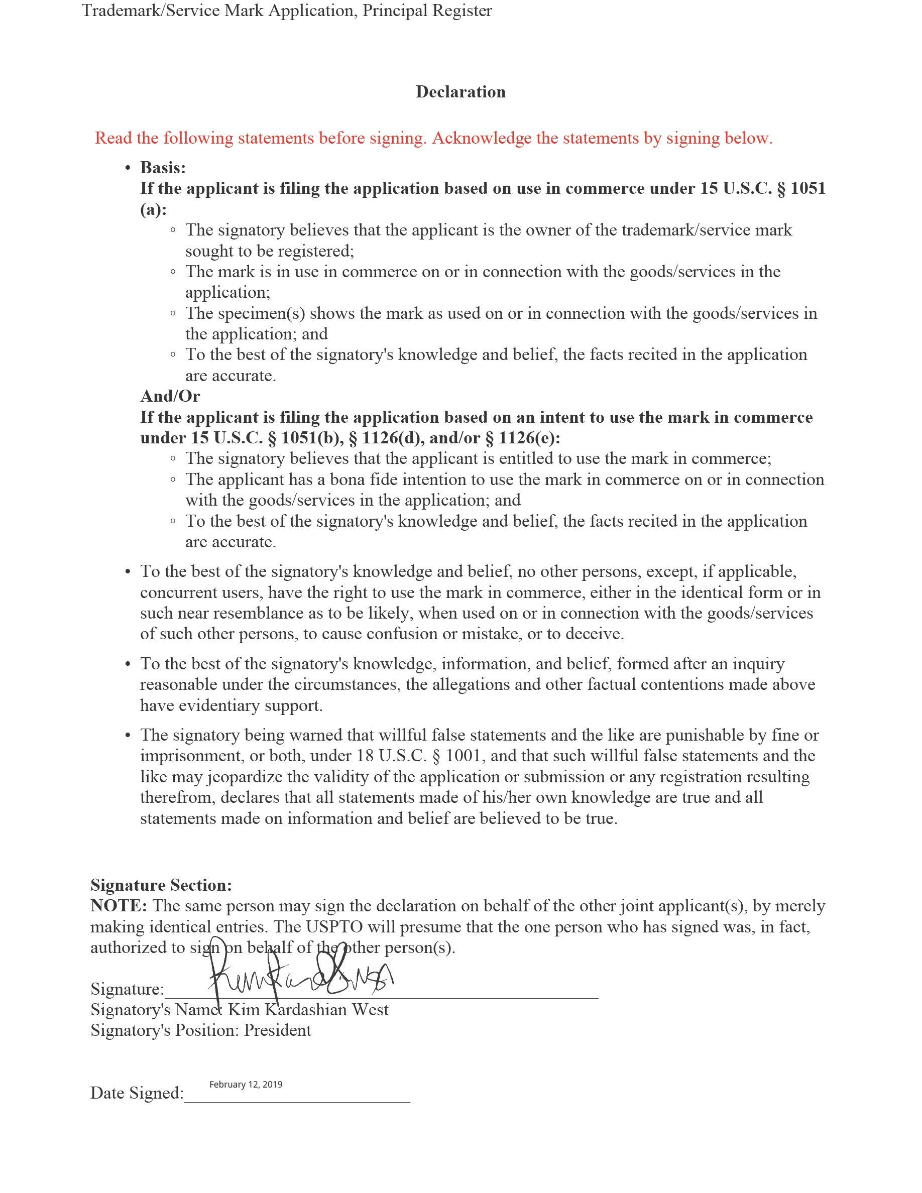 | SIGNATORY'S NAME | Kim Kardashian West |