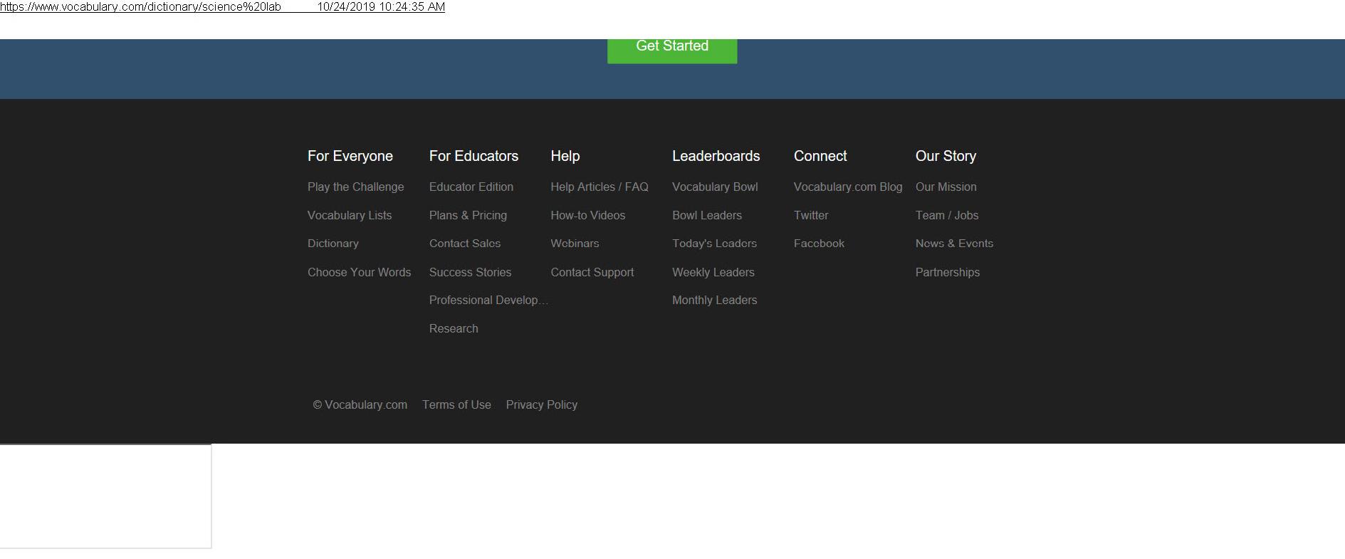 “science lab” Vocabulary.com (2019) https://www.vocabulary.com Retrieved October 24, 2019. See attachment.